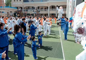 六一国际儿童节到来之际,河南焦作温县园举行了“筑梦航天”庆六一大型亲子活动。家长和孩子们穿着统一的服装闪亮登场。大家欢聚一堂,一起游戏、一起运动。整个操场欢笑声、加油声此起彼伏,这个六一儿童节快乐无比,定会给家长们、孩子们留下美好的回忆!