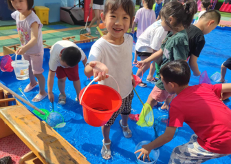 第一周“嗨翻一夏,“水”与争锋”的水枪大战,一说到玩水,孩子们马上“沸腾”起来。抓住这一契机,放开对孩子们的束缚,决定和水“亲密接触”一番,就这样一场别开生面的水枪大战开始了。孩子们身着各式各样的泳装,拿着各种样式的水枪……犹如一个个跳动的“彩色音符”。水枪大战开始啦!孩子们有的追、有的跑、有的射水、有的躲。大家你追我赶,玩得不亦乐乎。一支支水枪火力全开,不同班级的小朋友们互相配合互相帮助,一起“团结对敌”,无形中培养了孩们合作互助的精神和交友能力,小朋友们在游戏的过程中,也感受到了户外活动的魅力和乐趣所在。