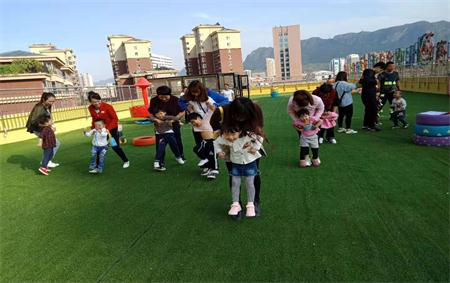 在天高气爽云淡风轻的九月,为了增强家园配合的实效性,进一步加快家园配合的步伐,我们园举行了亲子运动会。这是幼中一班的小朋友在和家长进行小脚踩大脚的活动,活动开始,小朋友们就已经跃跃欲试,那高涨的热情带动了家长参加的积极性。活动中,家长和小朋友更是群情激昂争先恐后,不但家长和小朋友配合默契,而且活动结束还意犹未尽,纷纷表示这样的活动要多举行。这一活动的开展,再一次让家长感受到了小朋友们在幼儿园的成长,感受到了金色摇篮理念教育下的孩子的全面发展,为加速家园共育的和谐发展起到了积极的推动作用。